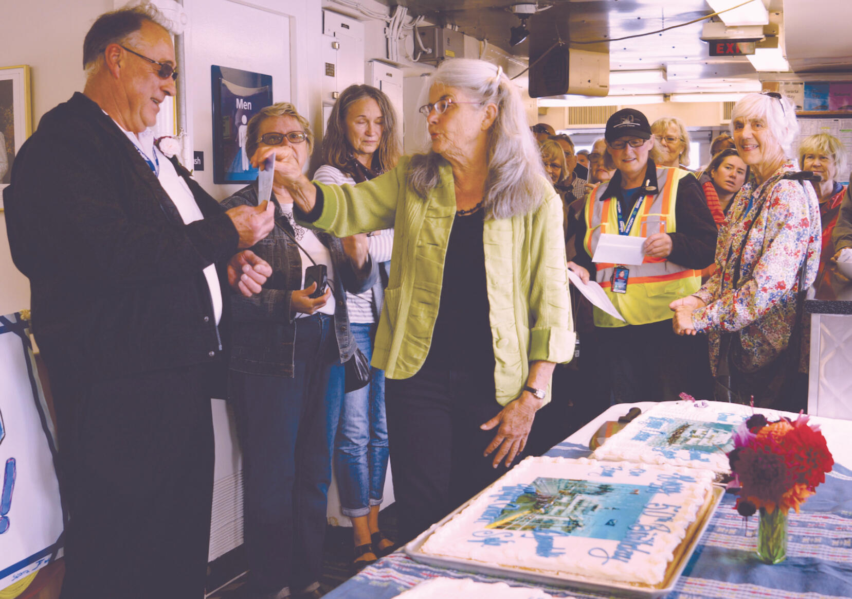 Adding a bit of drama, is Chapter 4: Groundings, Hard Landings and Close Calls. I have myself been on board at one of those close calls and they do add romance to islands’ life and are great yarns to tell— once we are safe and sound. We have skillful crews to thank that such things are few and far between. The people she has carried on her comings and goings are not left out; in Chapter 3, Wiznuk gives us a ‘day in the life’ of the ferry, starting from his island, Saturna. Plying Southern Gulf Islands routes, Mayne Queen has served Galiano, Mayne, Saturna and Pender Island communities. So well-loved is she that she even got a 50th birthday party, including a cake